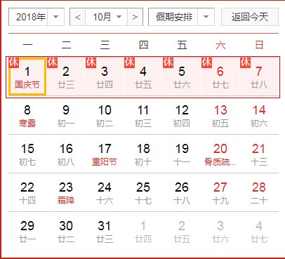 根據(jù)《國務(wù)院辦公廳關(guān)于2018年部分節(jié)假日安排的通知》結(jié)合本公司實際情況,我司國慶放假安排如下: